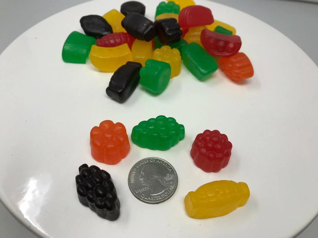 Jumbo JuJu Fruit Candy. Large juju drops in fruit shapes with a chewy texture….fresh and delicious. Flavors include Lime, Cherry, Lemon, Orange, and Licorice. This listing is for a bulk 5 pound bag of Jumbo JuJu Fruits.