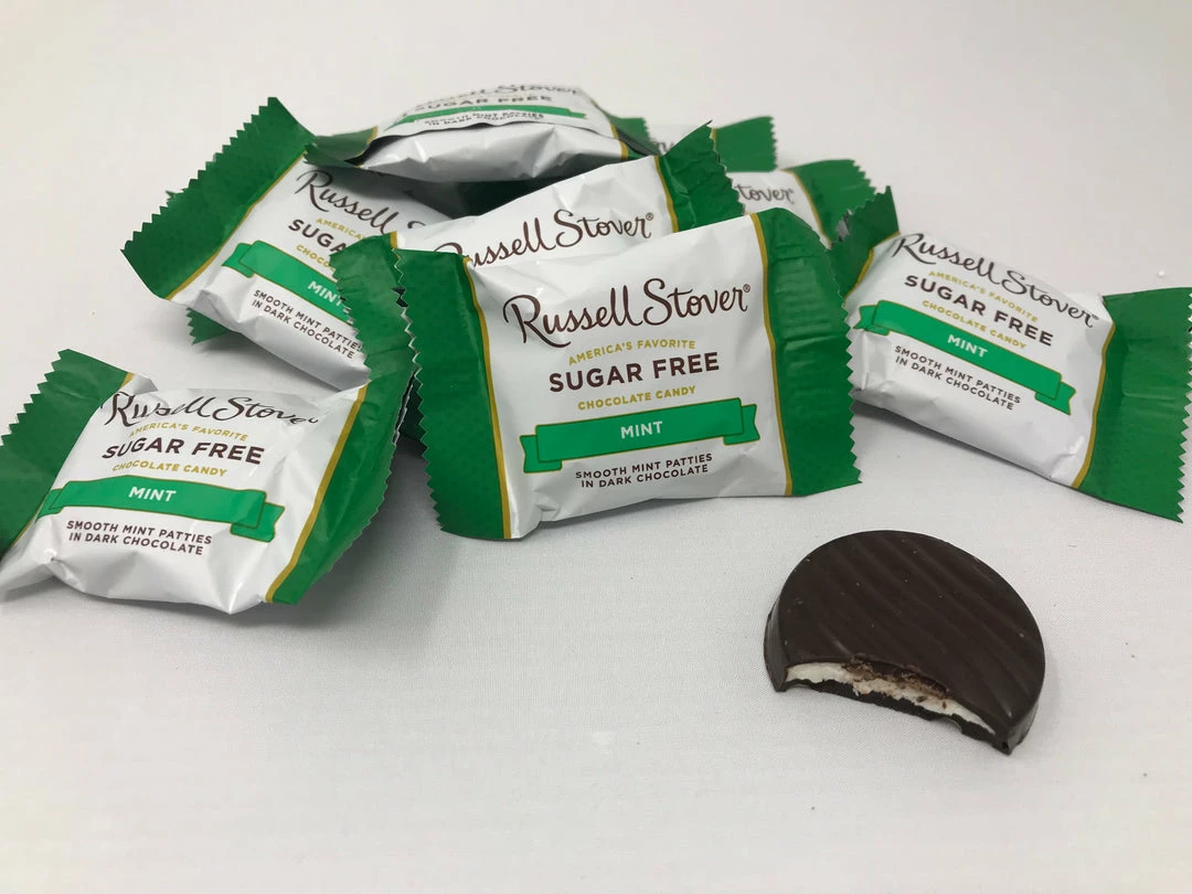 Russell Stover Sugar Free Mint Patties. Smooth Mint wrapped in Dark Chocolate. Fresh, Delicious, and Sugar Free!! This listing is for a bulk 4 pound bag of Russell Stover Sugar Free Mint Patties.