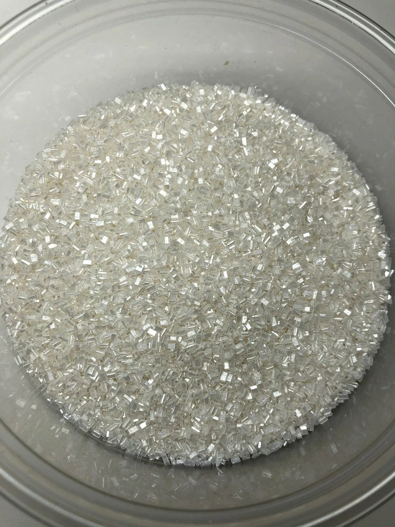 White Crystals sugar sprinkles. Shiny, larger size pieces of sugar sprinkles up to 1/16″. The perfect topping for your cookies, cupcakes, ice cream, or any other dessert! This listing is for a bulk 1 pound package of white sugar crystals sprinkles.
